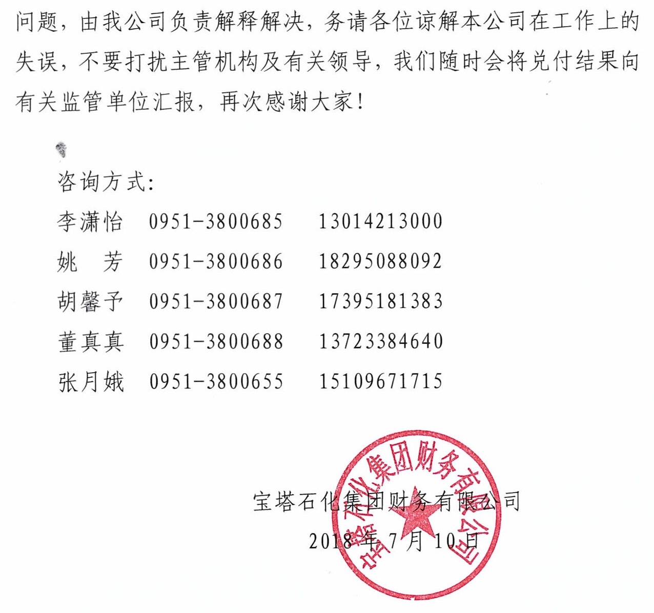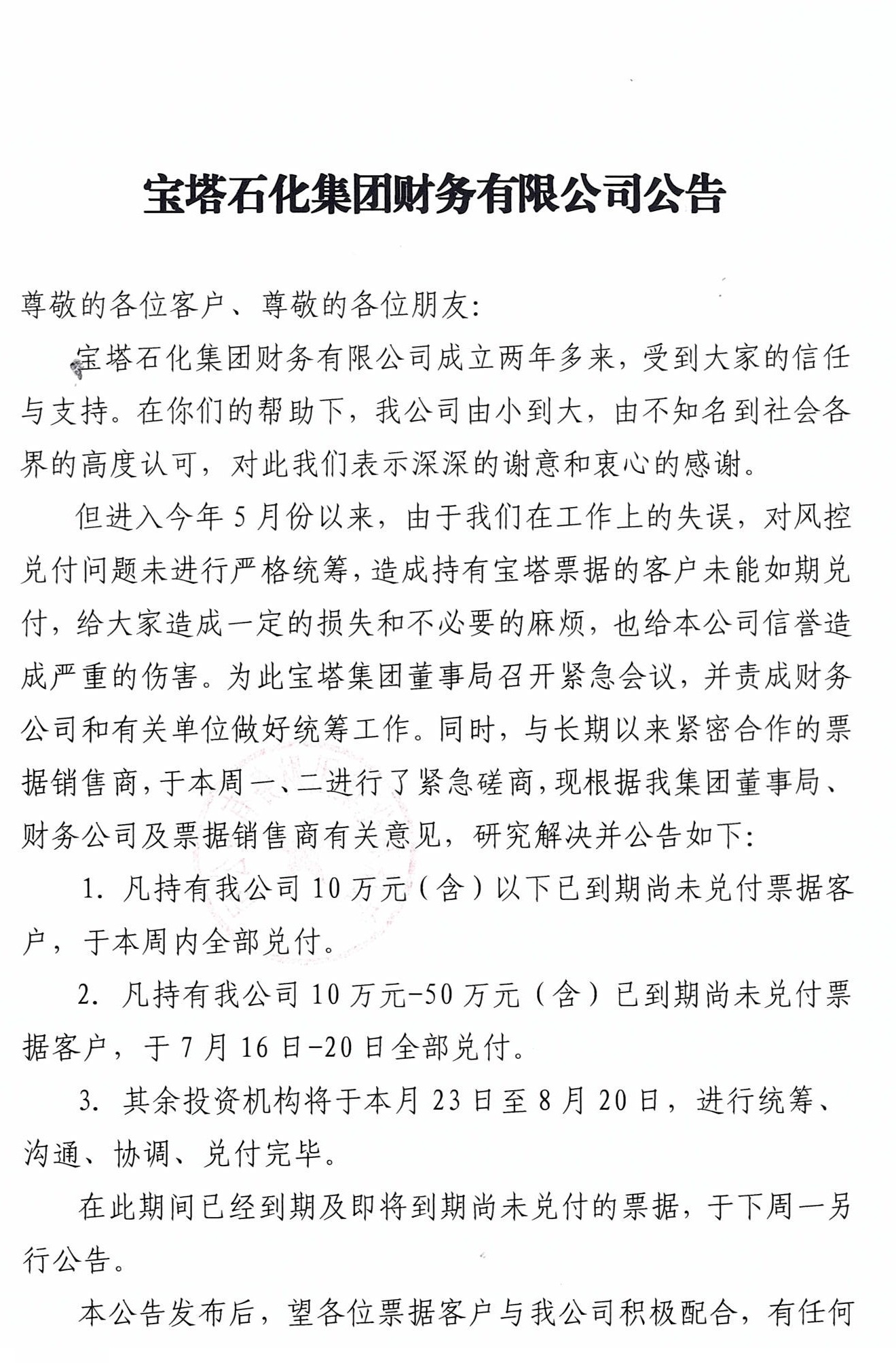 下一篇: 宝塔石化集团财务有限公司关于票据兑付事项的第一次公告