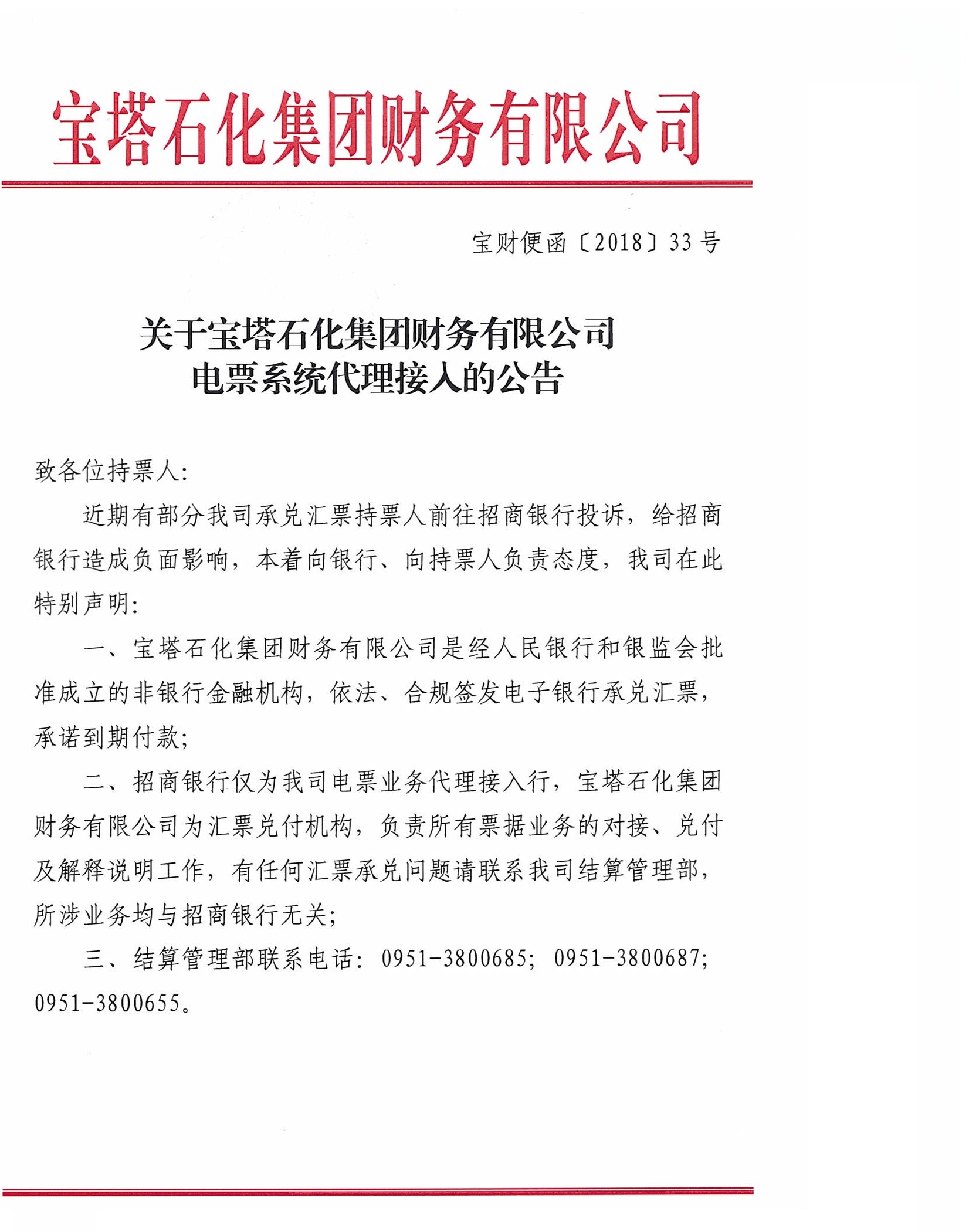 下一篇: 关于宝塔石化集团财务有限公司票据兑付接听电话的公告